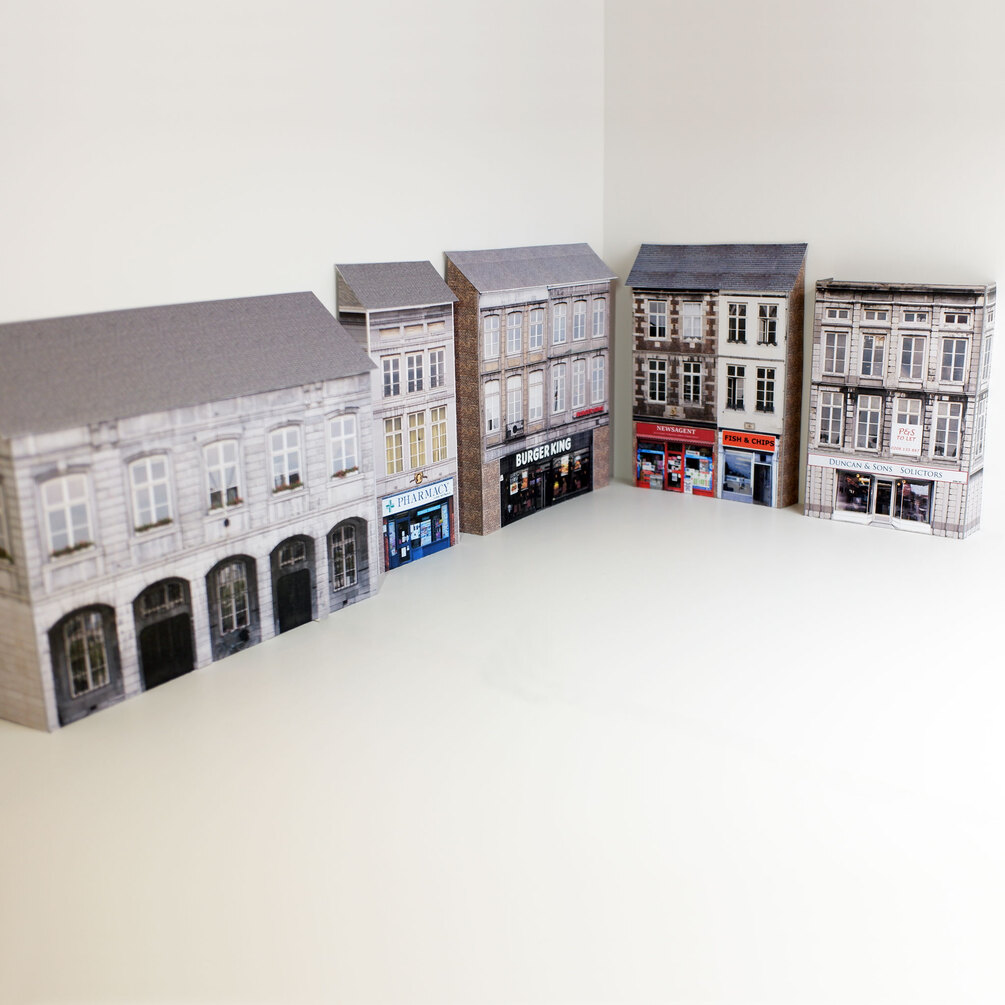 Printable Town Shops – Pack of 5 Low-Relief Buildings (S11)