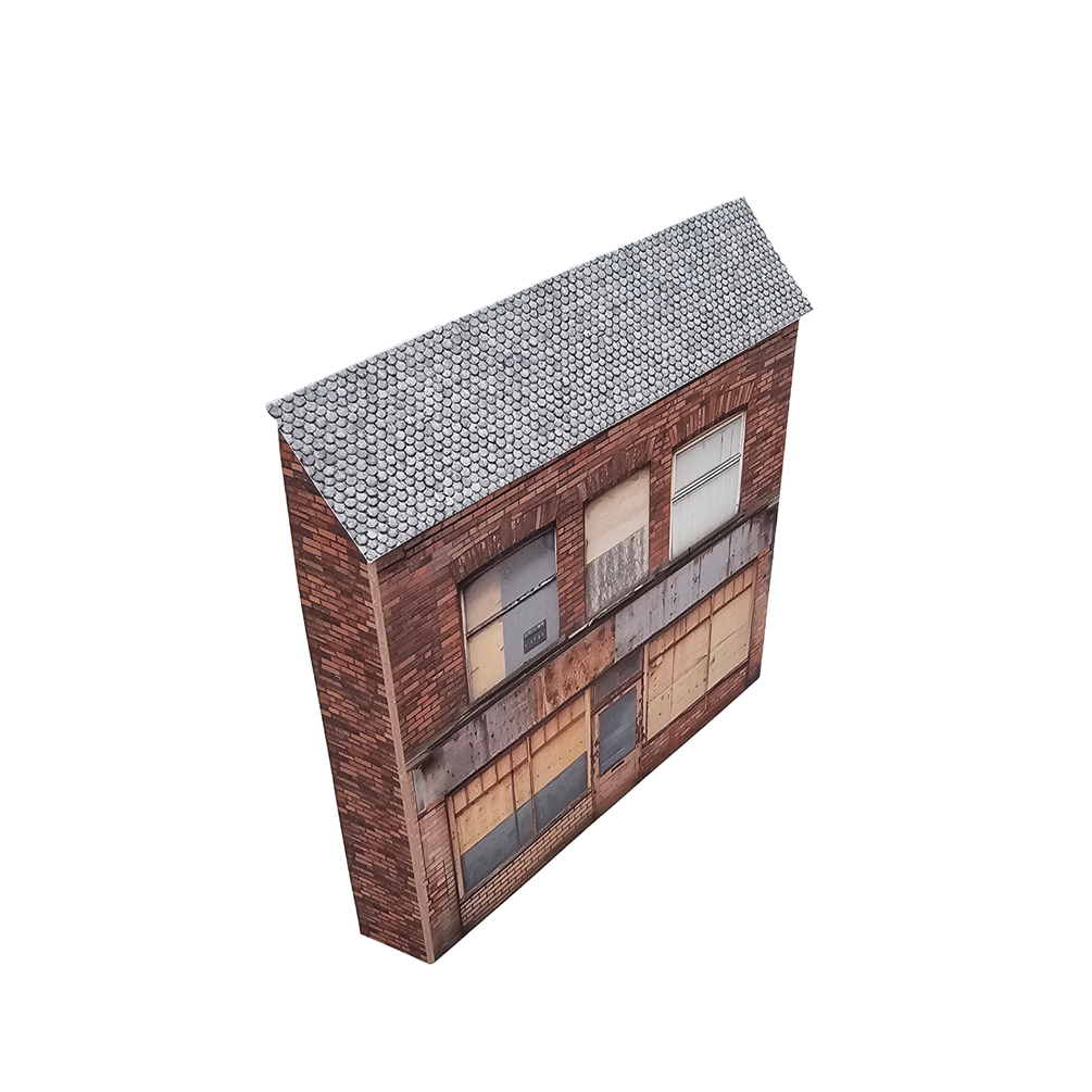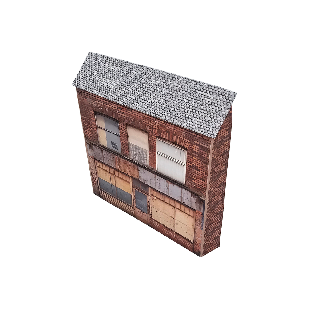 Add a touch of gritty realism to your layout with these free derelict buildings—perfect for creating the "dodgy" end of your model railway high street! These low-relief card models in OO scale feature boarded-up shops, ready to print at home for instant scenery.