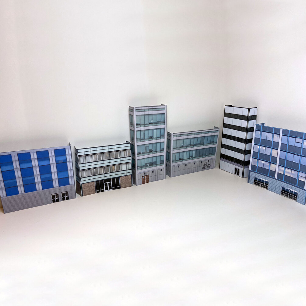 Add depth and realism to your OO gauge city scenes with these printable high-rise façades and modern buildings. Perfect for background scenery, they capture the look and feel of contemporary urban streets while remaining easy to print, cut, and build.