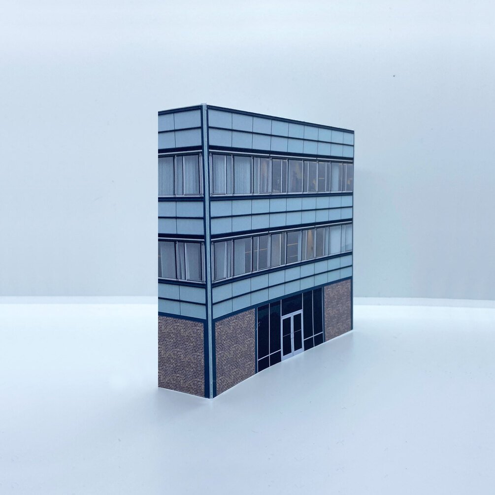 Give your model railway layout a modern urban edge with these printable low-relief city buildings, ideal for adding depth and detail to town and city backdrops.
