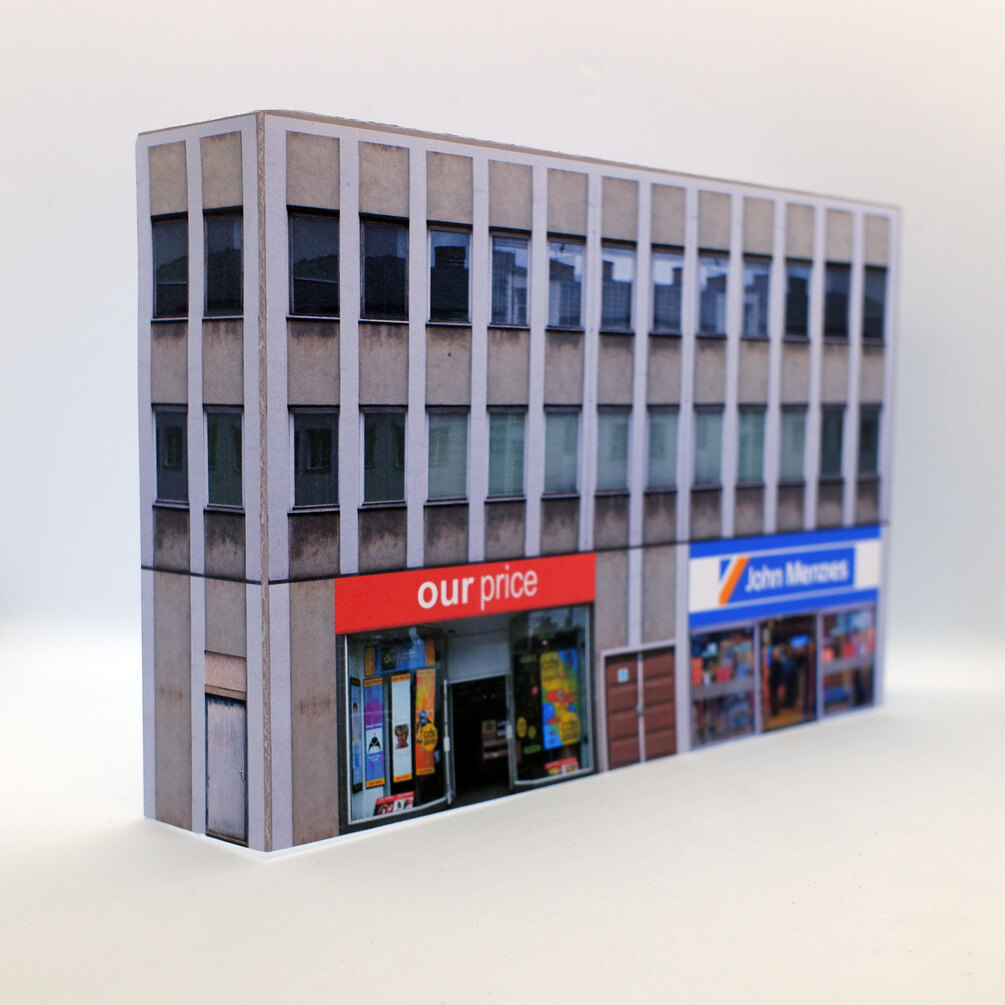 These OO gauge (1/76 scale) low-relief buildings capture the nostalgic look of British town centres from the 80s and 90s, complete with classic shopfronts that bring realism and atmosphere to your layout.